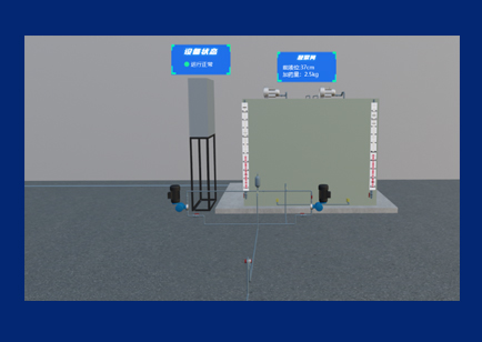 數(shù)字孿生-消毒間三維模型 對(duì)水廠凈化消毒設(shè)備運(yùn)行參數(shù)等實(shí)時(shí)采集,對(duì)藥劑變量投加進(jìn)行實(shí)時(shí)監(jiān)測(cè),并進(jìn)行啟??刂坪吐?lián)動(dòng)控制。