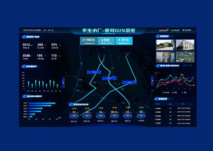 水質(zhì)監(jiān)測(cè)-管網(wǎng)GIS總覽 通過(guò)大屏顯示系統(tǒng),遠(yuǎn)程在線實(shí)時(shí)獲得供水管網(wǎng)關(guān)鍵節(jié)點(diǎn)運(yùn)行狀態(tài)信息,通過(guò)可視化界面展示管網(wǎng)結(jié)構(gòu)和運(yùn)行情況可對(duì)管網(wǎng)進(jìn)行空間定位、屬性描述等功能,實(shí)現(xiàn)管網(wǎng)的可視化管理和査詢.